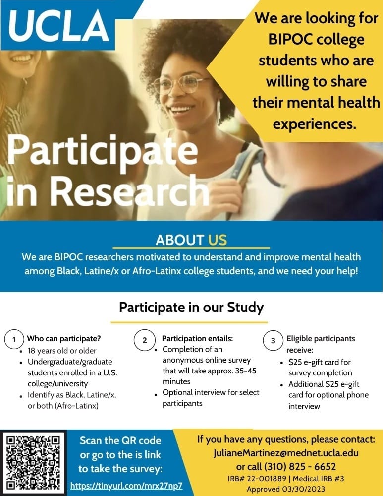 UCLA is studying college students' experiences with discrimination to help better understand and amplify their voices. Your insights could make a real difference in shaping future policies and conversations around inclusivity on campuses plus get the chance to win a $25 USD for your contribution. If you or someone you know might be interested: